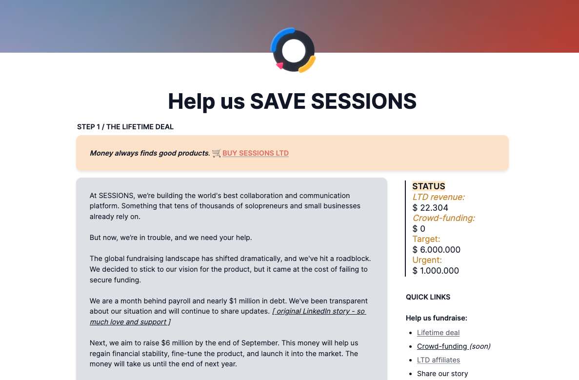 2024年8月初,Sessions創辦人在LinkedIn公布了一則貼文消息:Sessions公司只剩10美元現金和高達百萬美元的債務。